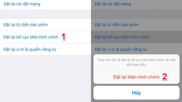 Trong giao diện Đặt lại (Reset) bạn chọn mục Đặt lại bố cục Màn hình chính (Reset Home Screen Layout) là xong. Bây giờ tất cả các icon ứng dụng trên thiết bị sẽ được sắp xếp lại từ A - Z.