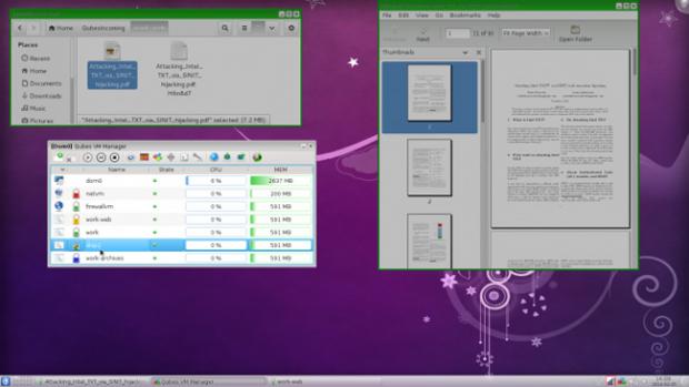 Sử dụng Qubes có lẽ sẽ phức tạp hơn các hệ điều hành khác. Tuy nhiên, việc chạy ứng dụng trong máy ảo không khó như bạn nghĩ. Đáng chú ý là tính đơn giản của Qubes như tôi đã đề cập ở trên. Thoạt nhìn, Qubes xuất hiện như một môi trường desktop tiêu chuẩn. Về giao diện, nó cũng không hề phức tạp hơn so với các bản phân phối Linux khác, ví dụ như Ubuntu chẳng hạn. Ví dụ, bạn có thể xem hai trường hợp khác nhau của cùng một trình duyệt web song song, chúng có thể chạy trên các tên miền bảo mật khác nhau. Một cái có thể là trình duyệt (browser) đáng tin cậy trong khi cái còn lại là trình duyệt không đáng tin cậy. Khi truy cập cùng một trang web trong cả 2 trình duyệt chạy song song, nếu bạn đăng nhập vào một trình duyệt đáng tin cậy rồi thì bạn sẽ không đăng nhập được vào trình duyệt còn lại nữa. Đó là bởi chúng nằm trong các tên miền riêng, trên các máy ảo riêng biệt. Ngay cả các trình duyệt file cũng được tách biệt hoàn toàn. Tuy nhiên, sử dụng Qubes không giống như đang sử dụng máy ảo, bởi Qubes tích hợp tất cả các máy ảo vào một máy tính, nên mọi thứ đều xuất hiện liền mạch. Tuy nhiên, có các phương tiện để chia sẻ giữa các domain. Ví dụ: nếu bạn có một file được lưu trong personal domain, bạn có thể sao chép nó vào work domain. Ngay cả khi clipboard là domain riêng biệt, nếu bạn copy văn bản trong tài liệu trên work domain và nhấp vào một tài liệu trên personal domain, đoạn văn bản đó sẽ được chuyển thành original domain. Tuy nhiên, với các tập tin, bạn có thể sử dụng Ctrl + Shift + V để sao chép dữ liệu clipboard giữa các domain. Các đường viền màu khác nhau sẽ phân biệt các domain riêng giúp bạn dễ dàng xác định các ứng dụng.