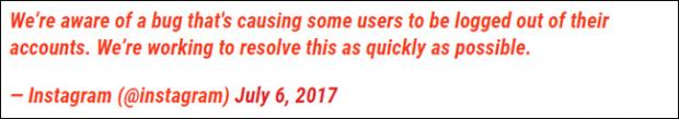 Bắt đầu từ hôm thứ 5 (tức ngày 6/7 vừa qua), nhiều người dùng bảy tỏ sự bực bội trên các trang mạng xã hội khi không thể truy cập vào tài khoản của mình. Một số người dùng cho biết, họ được thông báo bị vô hiệu hóa tài khoản bởi đã vi phạm điều khoản sử dụng của Instagram mặc dù họ không phạm phải bất kì quy tắc nào. Một số khác được thông báo xác minh tài khoản bằng số điện thoại nhưng sau đó tài khoản của họ cũng không hoạt động.