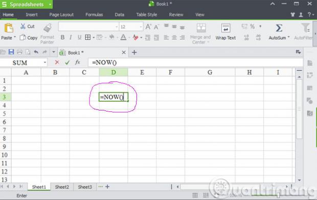 Nếu muốn thời gian hiện tại vào một ô nào đó trong bảng tính Excel, hãy sử dụng hàm =NOW. Trước hết, hãy di chuyển con trỏ chuột đến một ô bất kỳ rồi chỉ cần gõ cú pháp =NOW(). Điểm tiện lợi của hàm này là không yêu cầu bất kỳ tham số nào bên trong dấu ngoặc. Kết quả trả về chính là thời gian hiện tại trên hệ thống máy tính.