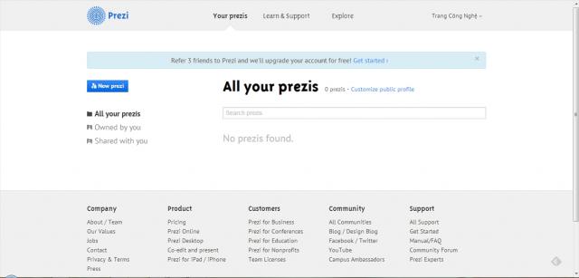 như dưới đây. Trên cùng là 3 Tabs: Your Prezi (Tab