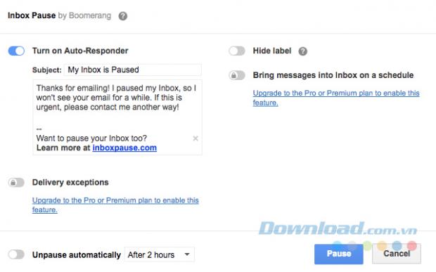 Tạm ngừng nhận email trên Gmail trong một khoảng thời gian