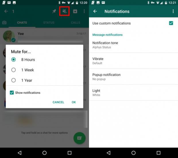Nếu bạn muốn thay đổi các thông báo khác, hãy nhấn vào tên nhóm, sau đó sử dụng nút Menu để chọn Group Info. Chọn Custom Notifications và tích vào hộp Use custom notification. Bạn có thể điều chỉnh âm thanh, chế độ rung và cài đặt bật lên. Sử dụng âm thanh khác cho các nhóm nhất định sẽ giúp bạn xác định tin nhắn thuộc nhóm nào mà không cần nhìn vào điện thoại.