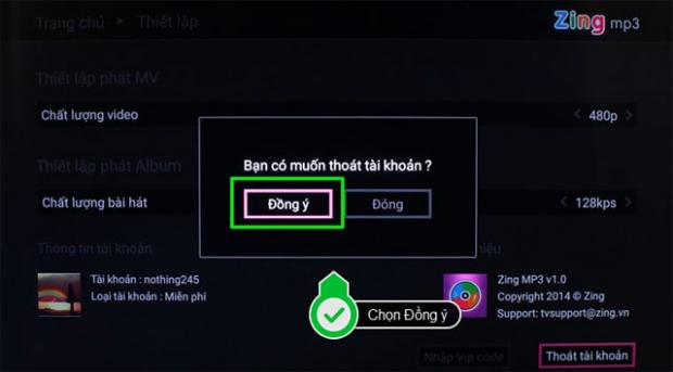Bước 10: Khi muốn thoát tài khoản Zing MP3, tại cửa sổ thiết lập ứng dụng chọn Thoát tài khoản.