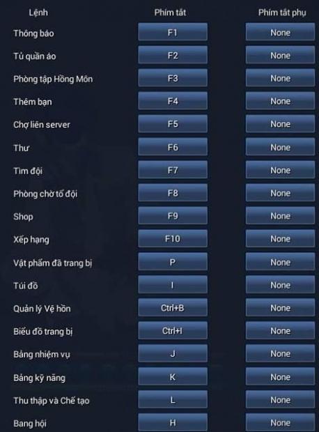 - Ctrl + P: Liên hệ GM.