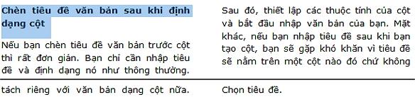 Chèn tiêu đề văn bản sau khi định dạng cột