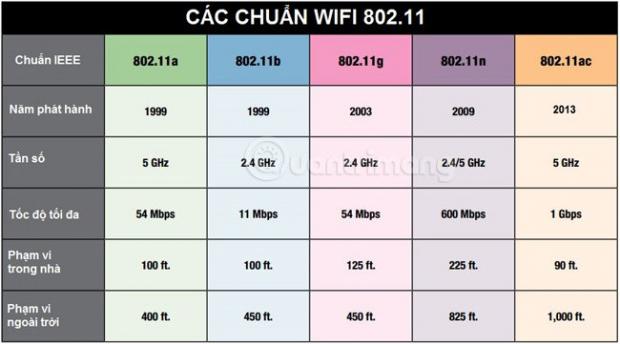 Các chuẩn WiFi - 802.11b, 802.11a, 802.11g, 802.11n và 802.11ac