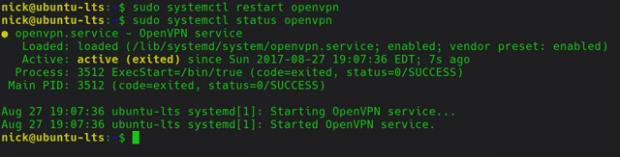 Đó là tất cả những gì bạn cần làm để kết nối với VPN của mình. Khởi động lại dịch vụ OpenVPN để thay đổi có hiệu lực.sudo systemctl restart openvpn