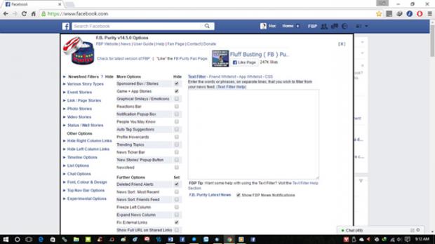 Được phát hành vào năm 2009 và tương tự như Social Fixer, nhưng F.B. Purity được xem là có nhiều tùy chọn tùy chỉnh phong phú và hay ho hơn. Một số tính năng của F.B. Purity yêu cầu bạn phải cài đặt thêm một phần mở rộng nào đó và một số lại thuộc 'hàng' đặc biệt chỉ có ở F.B. Purity. Cụ thể F.B. Purity có các tính năng chính như sau: