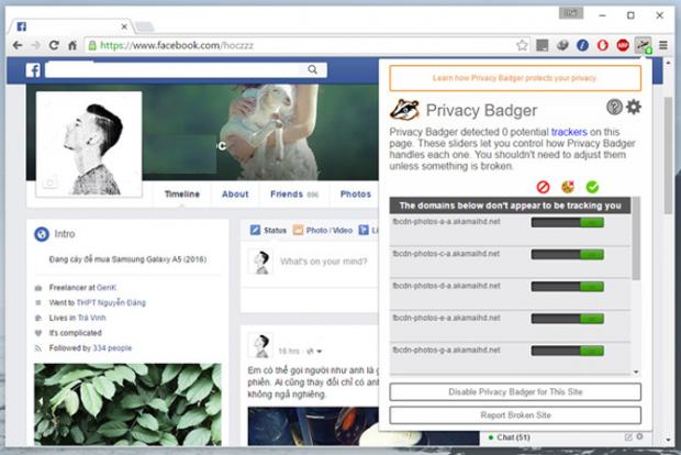 Các nhà phát triển tại Electronic Frontier Foundation (EFF) đã phát hành một tiện ích mở rộng dành cho Google Chrome và Mozilla Firefox với tên gọi là Privacy Badger. Tiện ích này giúp người dùng nhanh chóng phát hiện và ngăn chặn các hành vi theo dõi từ các trang web và các mạng xã hội, trong đó có Facebook.