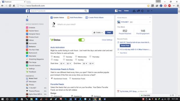 Với Detox, bạn có thể dễ dàng tùy biến News Feed của Facebook chỉ hiển thị các nội dung từ một nguồn cung cấp nào đó như The Verge, DeviantArt, Mashable,... hay từ một cơ số người dùng nào đó.