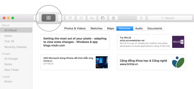 Vài phím tắt với Notes trên OS X