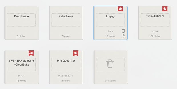 Đặc biệt, thứ mình rất thích ở Evernote mà Apple Notes không có đó là notebook chia sẻ. Apple Notes cho phép tạo folder để sắp xếp theo từng chủ đề, Evernote cũng có folder tương tự, có điều họ gọi nó là 'notebook'. Nhưng cái khác biệt đó là bạn có thể chia sẻ cả notebook của Evernote cho người khác cùng xem, cùng chỉnh sửa, cùng tạo mới, rất tiện khi cần trao đổi thông tin và ghi chú với bạn bè lúc làm nhóm hay với đồng nghiệp trong cùng dự án, cùng bộ phận. Một ghi chú bạn ghi lên đó sẽ được tất cả mọi người cùng thấy, không cần phải gửi mail cho từng người như xưa nữa. Mỗi người cũng có thể chỉnh sửa lại ghi chú của người khác nếu cần.
