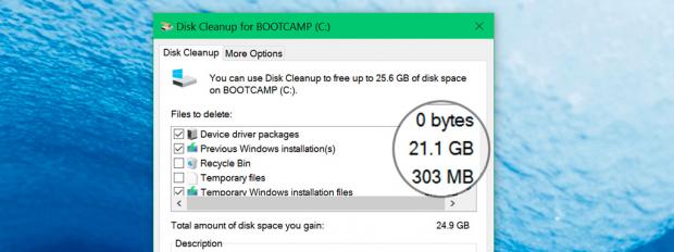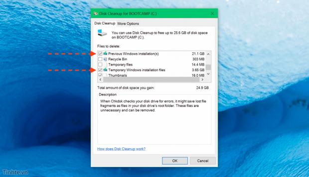 - Tick vào dòng 'Previous Windows Installation(s)' để xóa Windows.old