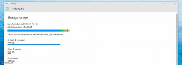 Trước đây ở những bản Windows cũ thì việc tìm file để xóa khá khó khăn vì bạn thường lồng một đống folder vào nhau, chưa kể là Windows Explorer thường chẳng báo dung lượng của các folder lớn bên ngoài nên có thể bạn sẽ bỏ sót những thứ đáng ra cần xóa đi. Hay cái là trên Windows 10 có một công cụ quét ổ cứng tích hợp sẵn, bạn không cần phải cài thêm gì cả, chỉ việc bấm mấy cái là sẽ biết được loại file nào chiếm dung lượng bao nhiêu và dễ dàng đi nhanh đến chỗ cần xóa.