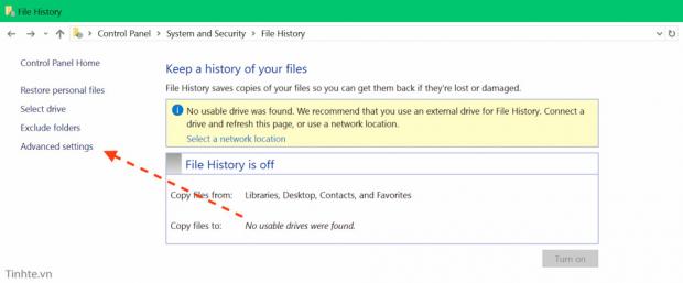 - Mở Control Panel > File History