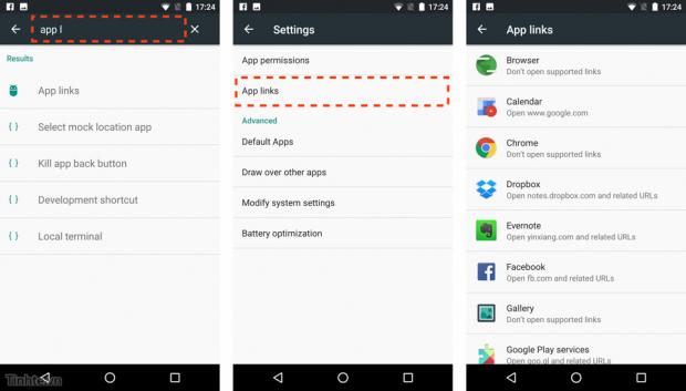 Bạn có thắc mắc vì sao khi bạn đang duyệt web, chạm vào link nào có facebook.com thì ứng dụng Facebook trên máy lại chạy lên. Tương tự, khi bạn mở link Google Play thì cửa hàng Play lập tức mở ra đúng ngay app bạn đang muốn xem. Đây là tính năng App Link và trên Android 6.0 thì bạn có thể dễ dàng quản lý chúng bằng cách vào Settings > nút search (hình kính lúp) > gõ vào chữ 'App links'. Trong danh sách vừa xuất hiện, bạn sẽ biết được app nào có nhiệm vụ mở link nào, và nếu thích thì có thể cấm không cho app tự chạy lên khi bạn nhấn vào link nữa. Một ví dụ đơn giản: bạn không muốn link photos.google.com mà thích xem trên nền web hơn, vậy thì vào đây chỉnh một cái là xong.