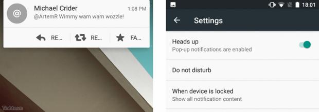 Heads up là dạng thông báo sẽ xuất hiện trên cùng màn hình khi bạn có thông báo. Nó không chỉ là một icon của app, mà hiện luôn cả nội dung thông báo đó là gì ra. Nếu bạn cảm thấy phiền khi một app nào đó cứ liên tục gửi toast ra, bạn có thể tắt nó đi với Android 6.0 bằng cách vào Settings > nhấn nút tìm kiếm > gõ vào chữ Heads up > chọn mục vừa xuất hiện > tắt dòng Heads up đi là xong.