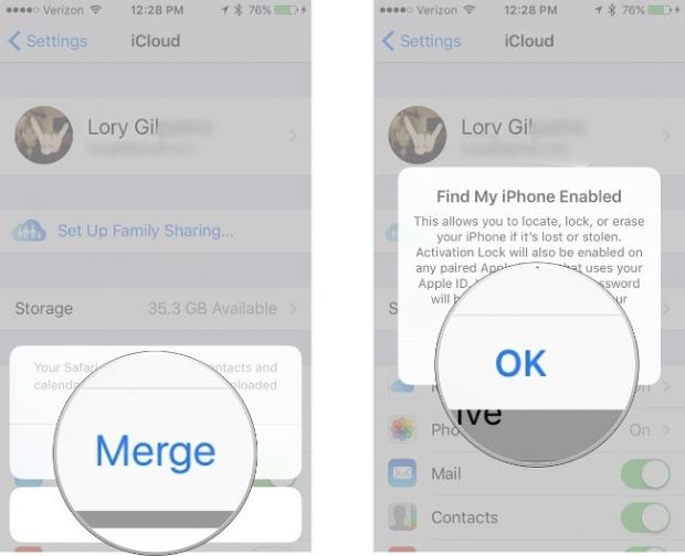 Merge hoặc Don’t Merge để đồng bộ dữ liệu iCloud từ Safari, nhắc nhở, danh bạ và lịch. Bước 6: Nhấn