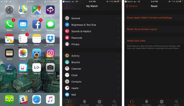 Nếu đang gặp sự cố với số liên lạc hoặc dữ liệu lịch được đồng bộ hóa, bạn có thể sử dụng cài đặt bên trong ứng dụng Watch để khởi động lại kết nối. Sau khi kích hoạt tính năng này, danh bạ và lịch của Apple Watch sẽ bị xóa và thay bằng dữ liệu đồng bộ iCloud gần đây nhất từ iPhone (Điều này đặc biệt hữu ích nếu bạn nhìn thấy số điện thoại trên Apple Watch thay vì tên). Bước 1: Mở ứng dụng Watch. Bước 2: Chạm vào tab My Watch. Bước 3: Chọn