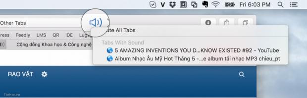 Mình rất khó chịu khi một trang web nào đó ngầm chạy bài nhạc quảng cáo mà giấu không muốn cho chúng ta biết để tắt đi. Nếu bạn đang mở cùng lúc thật nhiều tab thì lại việc tìm ra tab đang phát tiếng lại càng trở nên khó khăn hơn. May mắn là Safari đã có một biểu tượng hình cái loa giúp bạn nhanh chóng mute âm thanh ngay lập tức. Bạn có thể tìm thấy biểu tượng này ở trên thanh địa chỉ. Ngoài việc mute tất cả tab cùng lúc, bạn còn có thể nhấn giữ vào biểu tượng cái loa này để mute chỉ những tab nào bạn muốn, ví dụ như tắt tiếng của web ngân hàng đang phát tiếng trong khi vẫn để lại tab YouTube như bình thường.