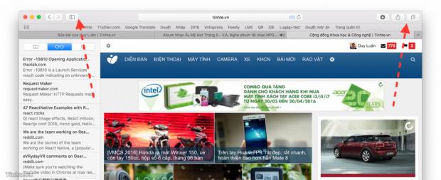 Để thêm một trang web vào Reading List, bạn làm theo hình bên dưới. Còn để tìm lại những trang này, nhấn vào biểu tượng Sidebar cũng có đánh dấu trong ảnh luôn. Coi hình cho lẹ chứ đọc chữ mệt.