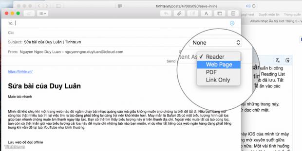 Tình huống xài cái này thì nhiều, mà thường nhất là gửi một câu chuyện, một hướng dẫn nào đó cho người khác đọc nhanh chóng mà không cần phải vào web đó lại, hoặc để lưu trữ về sau. Mình thì hay làm trò này để gửi file PDF biên lai chuyển tiền khi có mua đồ online, khỏi phải vào email forward mất công. Cũng có những khi cần gửi nguyên một văn bản nào đó mà lười copy thì cũng có thể xài chức năng tự trích xuất văn bản của Safari, khá là tiện.