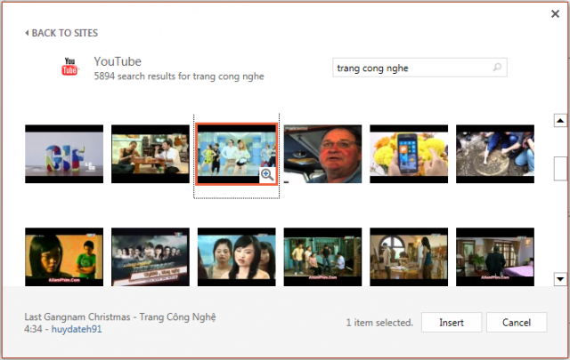 Việc tiếp theo thật đơn giản, bạn chọn video và nhấn nút Insert