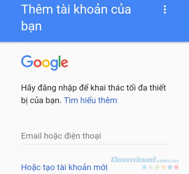 Bước 3: Chọn vào biểu tượng Google / Hoặc tạo tài khoản mới.