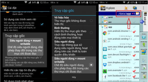 Đầu tiên , bạn cần mở X-plore : Vào Cài đặt X-plore > Truy cập gốc > Tích Chọn Siêu người dùng + mount writable > Chấp nhận quyền root > Ok .