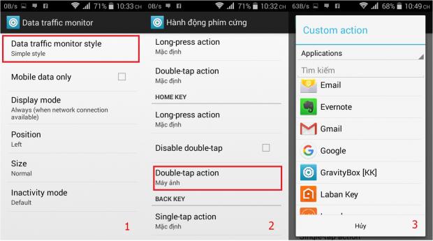 Ở đây mình đã gắn “Double Click” vào phím Home để khởi động máy ảnh nhanh (Hình2) cho giống các máy dòng S mới của Samsung. Các bạn có thể thêm nhiều tùy chọn thú vị hơn vào các phím menu, back, home để truy cập một thứ gì đó nhanh hơn, đem lại trải nghiệm thú vị hơn. Như Double click vào phím Back để chụp ảnh màn hình chẳng hạn…