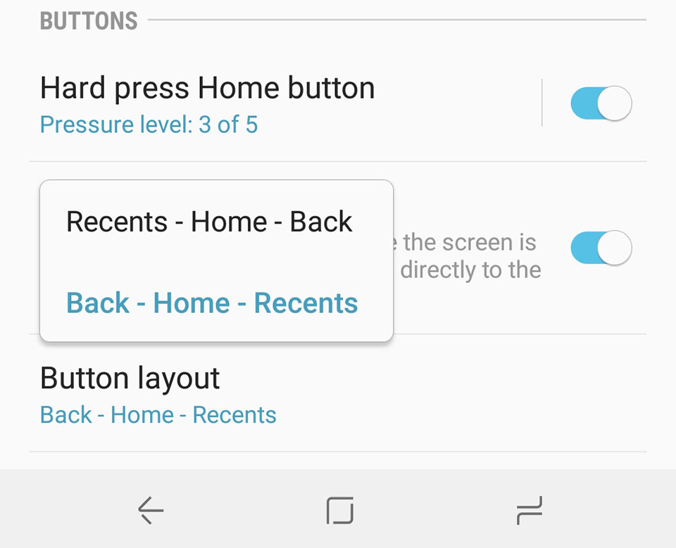 Giống như Galaxy S8, Note 8 có nút điều hướng trên màn hình. Bạn có thể thay đổi cách các nút này làm việc trong Settings > Display > Navigation bar. Có một nút “Hide” trên phía bên trái của thanh nav mà làm cho thanh điều hướng ẩn đi khi bạn sử dụng ứng dụng nào đó. Để kích hoạt lại, bạn chỉ cần vuốt nhẹ lên là được.