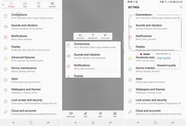 Thậm chí nếu bạn thực hiện tinh chỉnh Air Command, bạn chắc chắn sẽ muốn giữ lại Smart Select trong tùy chọn nhanh. Nó là tính năng cho phép mà bạn có thể sử dụng S Pen lấy một ảnh chụp màn hình được cắt trong vài giây. Sau khi mở Smart Select, bạn có thể chọn các hình dạng vuông, tròn, Lasso và GIF.