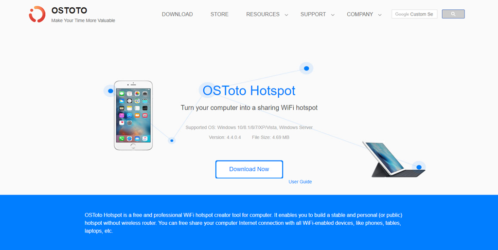 Theo như chia sẻ từ nhà phát triển, Ostoto Hotspot hướng đến người dùng thiết bị di động nhiều hơn, cung cấp khả năng phát sóng WiFi mà không cần tốn tiền mua thêm bộ chuyển đổi hoặc phát sóng WiFi. Cũng giống như các phần mềm miễn phí khác trong danh sách này, Ostoto Hotspot không bị hạn chế về loại kết nối internet và tương thích với Windows XP, 7, 8, 8.1 và 10