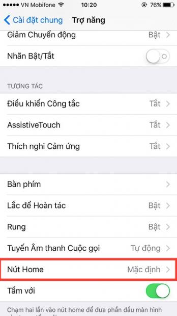 Bước 4: Nhấn chọn vào mục Home Button (Nút Home).