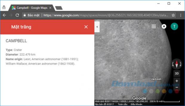 Những bức ảnh Mặt Trăng được gã khổng lồ tìm kiếm thu thập từ NASA, USGS, JAXA, SELENE... còn những bức ảnh Sao Hỏa đến từ NASA và USGS. Với tính năng mới hữu ích này, bạn thỏa sức khám phá các thế giới khác trong dải Ngân hà của chúng ta. Chúc các bạn thực hiện thành công!