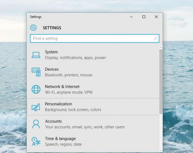 Để vô hiệu hóa hiệu ứng và giao diện trong suốt của Windows 10, bạn hãy mở ứng dụng Settings lên và truy cập vào Personalization.