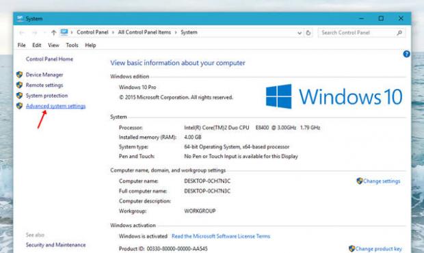 Cửa sổ System xuất hiện, bạn hãy nhấn vào tùy chọn Advanced system settings bên trái của sổ.