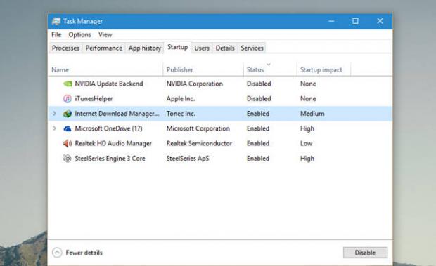 Hộp thoại Task Manager xuất hiện, bạn hãy nhấn vào tab Startup. Sau đó tiến hành nhấn chọn các tiến trình không mong muốn và chọn Disable.