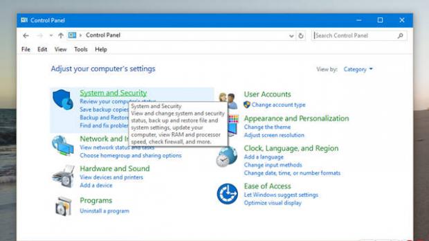 Trong chọn Control Panel, bạn hãy tìm đến System and Security.