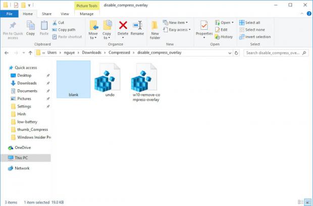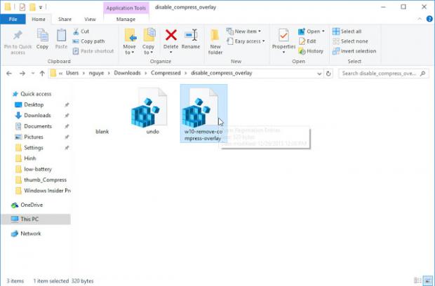 Các mũi tên màu xanh biểu tượng phủ lên một thư mục hoặc một tập tin cho biết rằng nó được nén bằng NTFS nén tập tin hệ thống để tiết kiệm không gian đĩa. Việc bổ sung các biểu tượng lớp phủ mới cho File Explorer trên Windows 10.