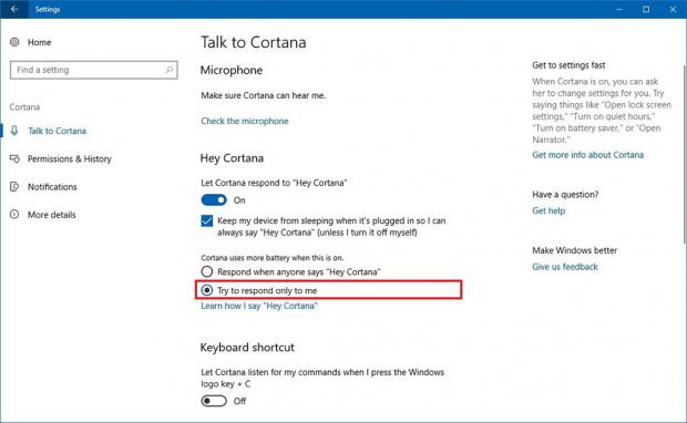 14. Thiết đặt Cortana chỉ nhận diện giọng nói của bạn (sau Windows 10 Fall Creators Update)