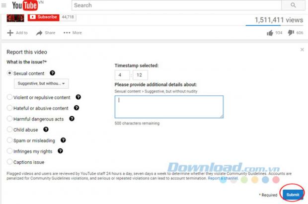 Nhập thông tin để báo cáo cụ thể cho YouTube biết. Chẳng hạn video đó có chứa nội dung khiêu dâm: