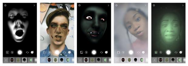 Bạn có thể chụp ảnh biến thành zombie, ma cà rồng hoặc những hiệu ứng tạo hình cực kỳ đáng sợ. Cùng với đó, bạn sẽ có thêm nhiều bộ sticker quen thuộc của lễ Halloween như bí ngô, kẹo ngô, phù thủy... Giờ bạn có thể chụp ảnh rồi chia sẻ ảnh của mình để hù dọa bạn bè vào dịp lễ Halloween này rồi.