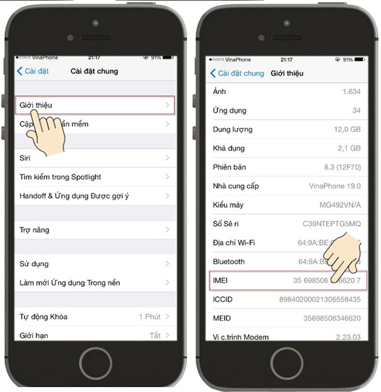 Bước 1: Đầu tiên các bạn vào kiểm tra imei của máy, bằng cách vào: Cài đặt > Cài đặt chung > Giới thiệu.