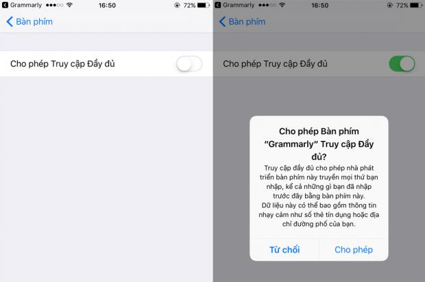 Để sử dụng đầy đủ chức năng, bạn mở Grammarly Keyboard trong giao diện thêm bàn phím mới và kích hoạt dòng Cho phép Truy cập đầy đủ là xong
