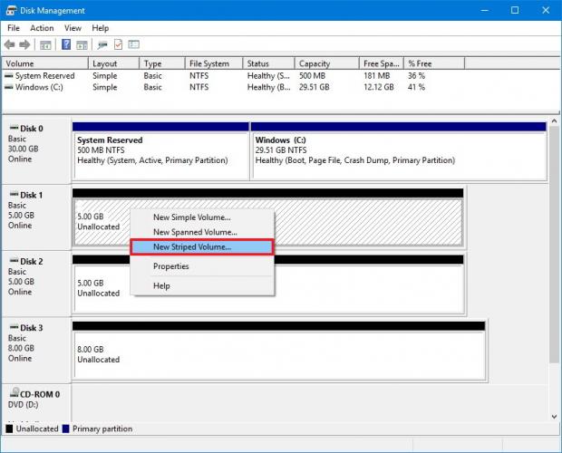 Điều quan trọng bạn cần lưu ý là tất cả nội dung của bạn sẽ bị xóa khi tham gia Spanned Volume hoặc Striped Volume, do đó nên tiến hành sao lưu dữ liệu của bạn trước khi thực hiện.