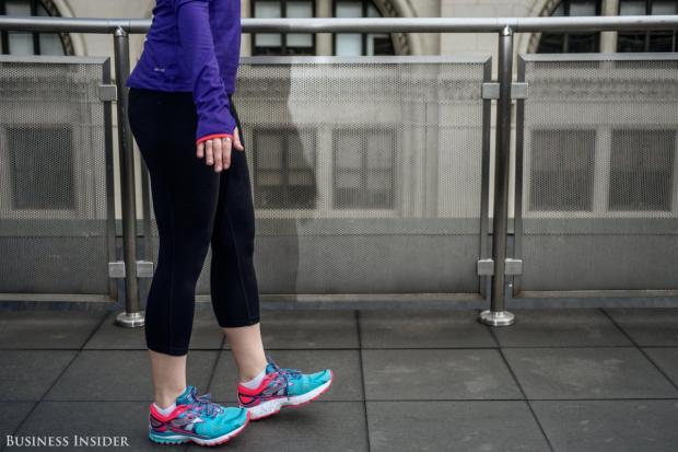 1. Để bắt đầu, chúng ta sẽ tập trung vào mắt cá chân. Moffat nói rằng tăng cường hai mắt cá chân rất quan trọng bởi vì chúng sẽ giúp duy trì sự cân bằng. Một lưu ý nhỏ là hãy giữ đầu gối thẳng với bài tập này.