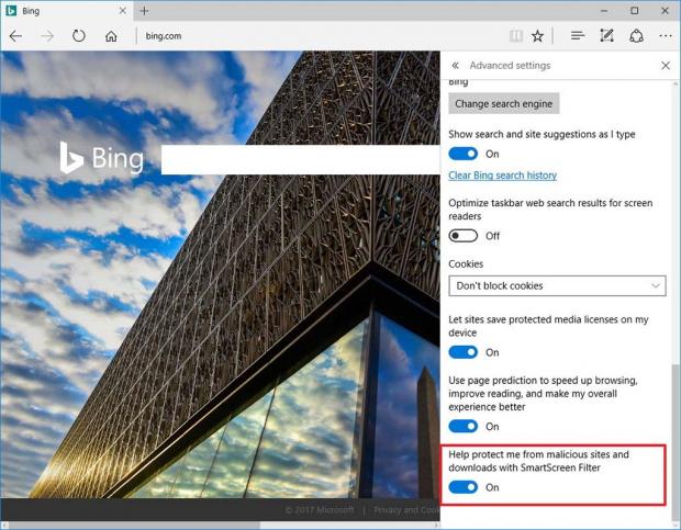 Nếu cảm thấy thật sự không cần thiết thì bạn cũng có thể vô hiệu hoá hoàn toàn tính năng SmartScreen Filter. Tuy nhiên, đây là việc làm không khuyến khích, bởi vì sau khi vô hiệu hoá tính năng này thì độ an toàn của máy tính sẽ giảm đi bởi vì Microsoft Edge sẽ không cảnh báo những tập tin nguy hiểm tải về từ Internet như trước đây.