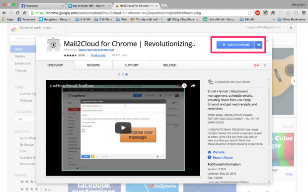 Bước 2: Mở Chrome lên và nhập link https://goo.gl/IhJOjR vào thanh địa chỉ. Sau đó nhấp vào “Add to Chrome” -> “Add extension” để cài đặt tiện ích mở rộng Mail2Cloud